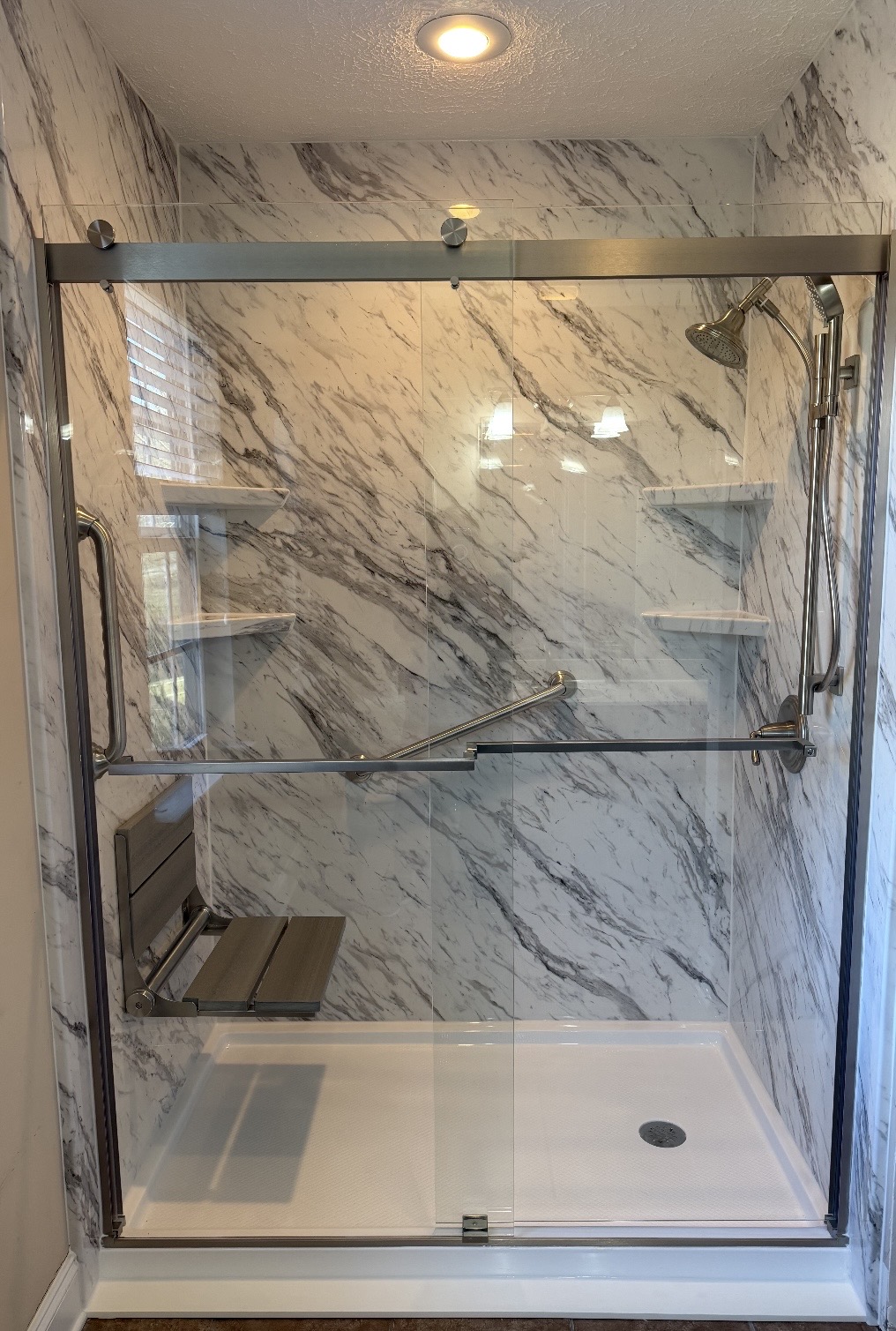 From seating options, grab bars, and much more, choose from accessories that best fit your space. All of our showers are made from easy to clean materials that will never crack or fade. Say goodbye to scrubbing dreadful grout.